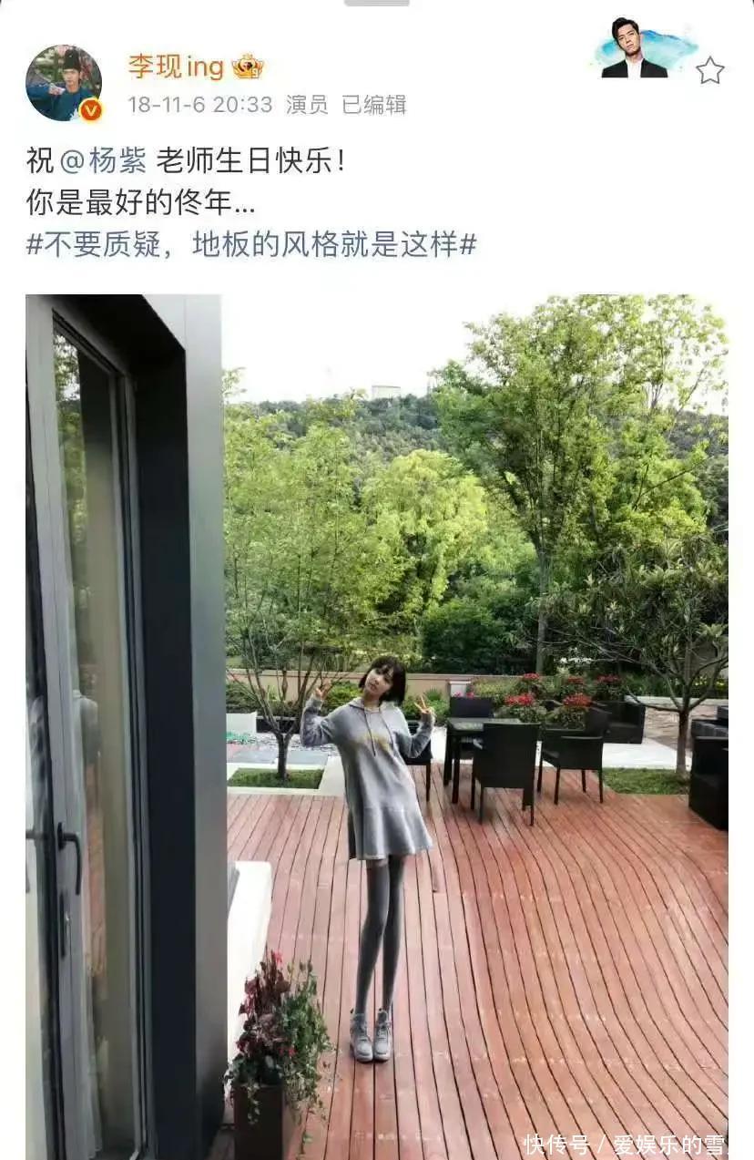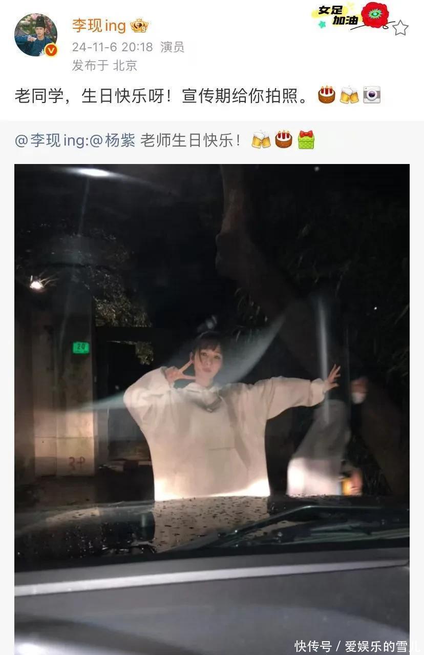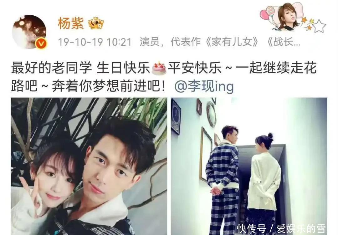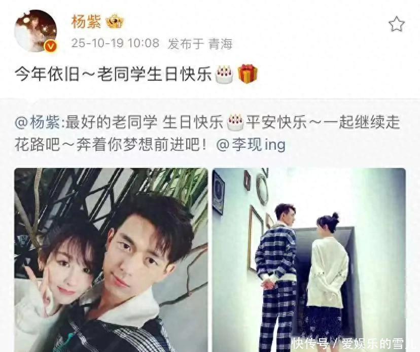 10月19日,演员杨紫在个人社交平台发博,为演员李现庆祝生日:今年依旧~老同学生日快乐!这是杨紫从2019年10月19日起,连续7年发博为李现庆祝生日了。